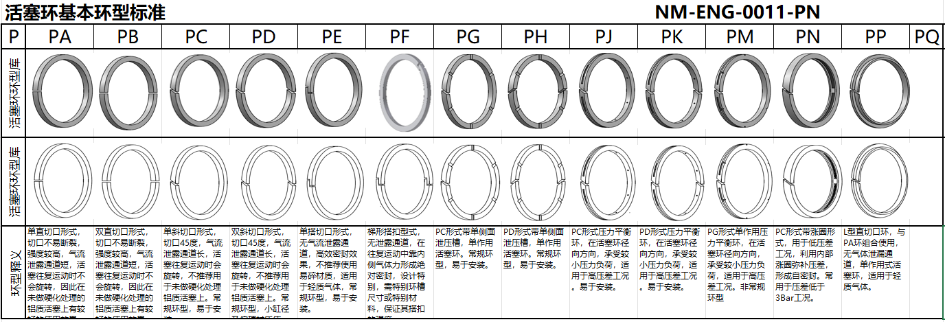 活塞環物理尺寸控制,支承環泄壓槽特殊設計,及活塞環支承環布置方式,提供針對性的最優化設計。